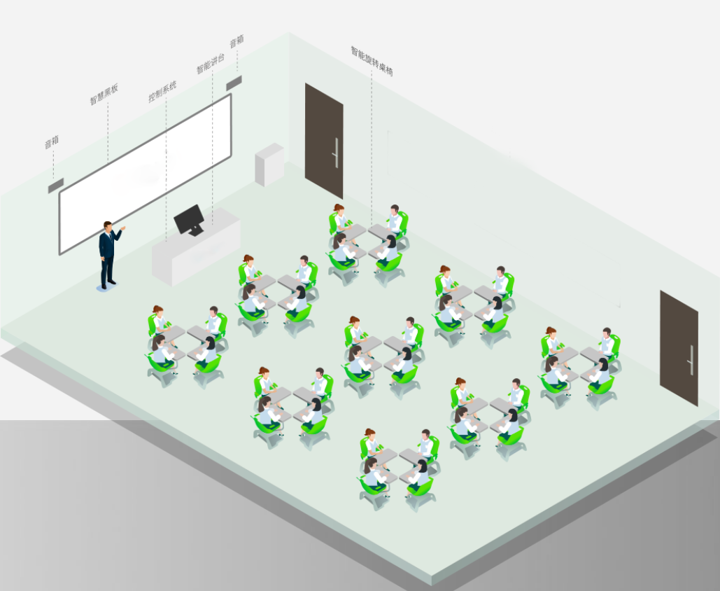 教學型智慧教室是由音視頻(pín)係統(tǒng)、互動係統、控(kòng)製係統、信發係統、學(xué)生行為分析係(xì)統、互動桌椅及環境改造而(ér)成,是教學模式的一種新型轉換。可在自(zì)由排座的模式下輕(qīng)鬆轉(zhuǎn)變各種教學模式(shì),促進混合(hé)式教學、翻轉課堂教學、探索式教學等多教學模式的應用(yòng)。實現課堂(táng)互動教學,讓學習(xí)知識由靠(kào)個人死記硬背的方式轉變為互動體驗的記憶(yì)方式。